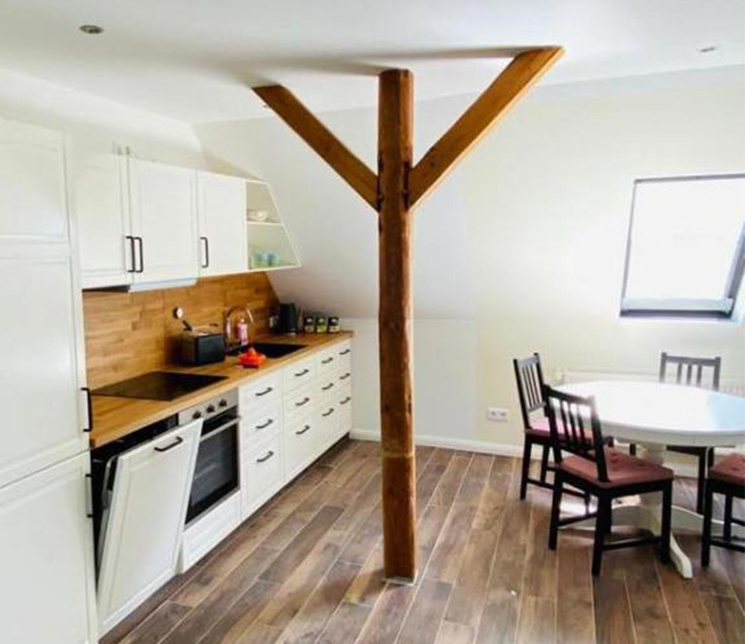 Die Ausstattung ist modern und gemütlich von der Küche bis zum Badezimmer mit Dusche und Badewanne ausgestattet.
